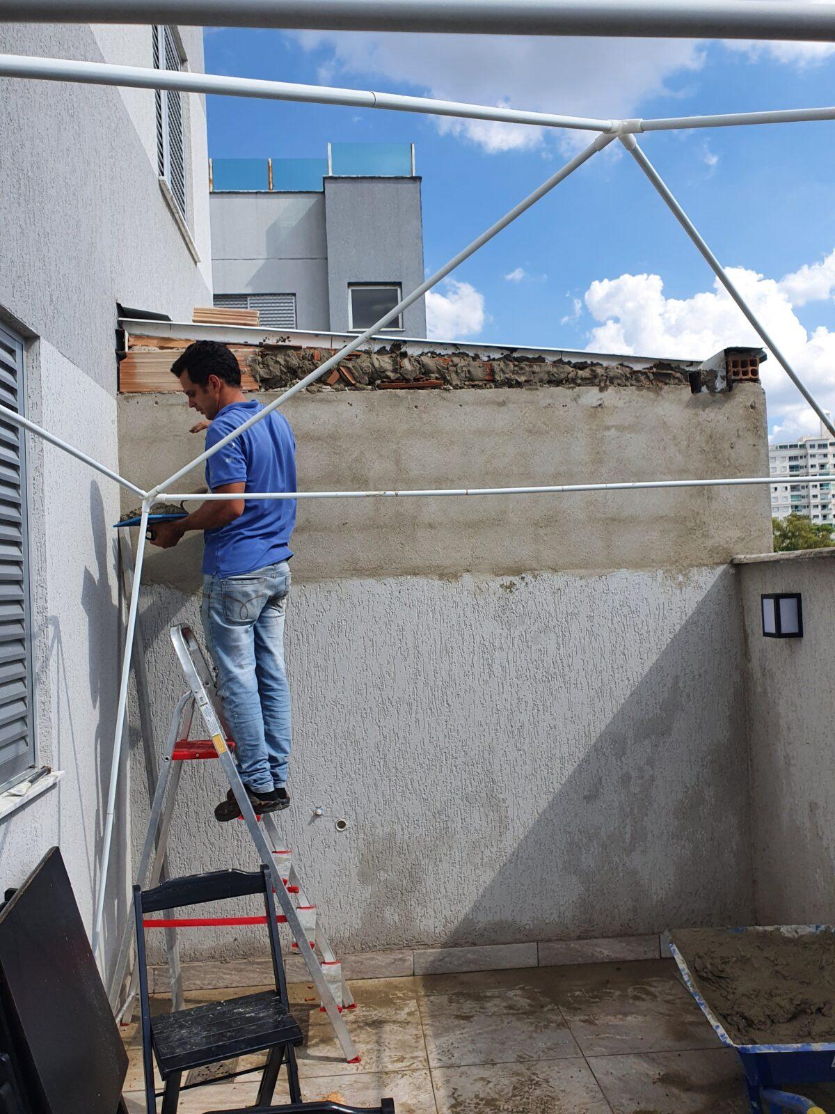 Iniciamos a obra demolindo o muro que fazia divisa entre a área comum do condomínio e área privativa existente, posterior a isso foi feito um novo fechamento em alvenaria de tijolo cerâmico.