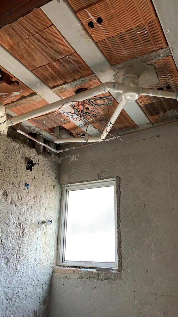 Iniciamos a obra realizando a demolição de todo revestimento e forro, além da remoção das louças, sanitário, armários e box.