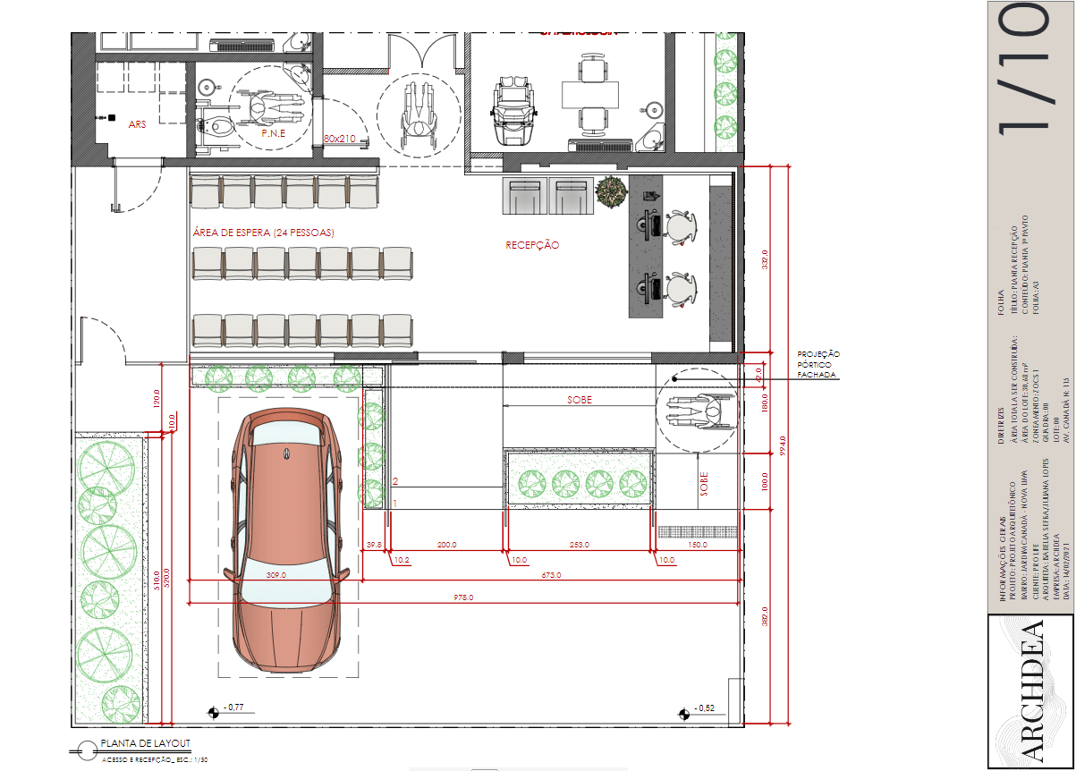 Para melhor expor essa obra a mesma foi dividia em três: Fachada, área de recepção e área das salas e consultórios.