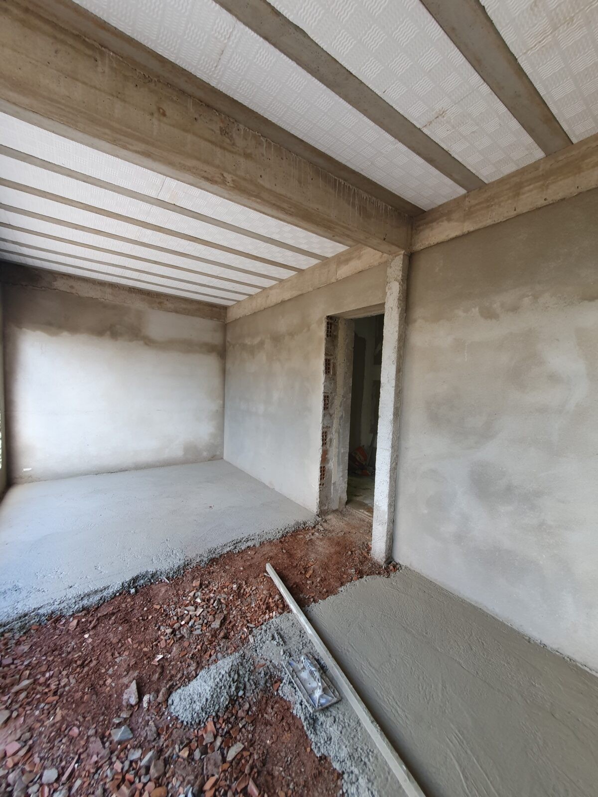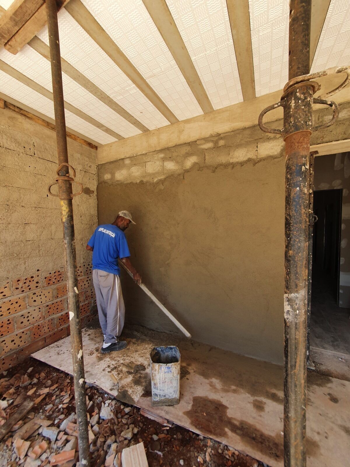 Depois disso iniciamos os rebocos nas paredes internas e execução do contrapiso.