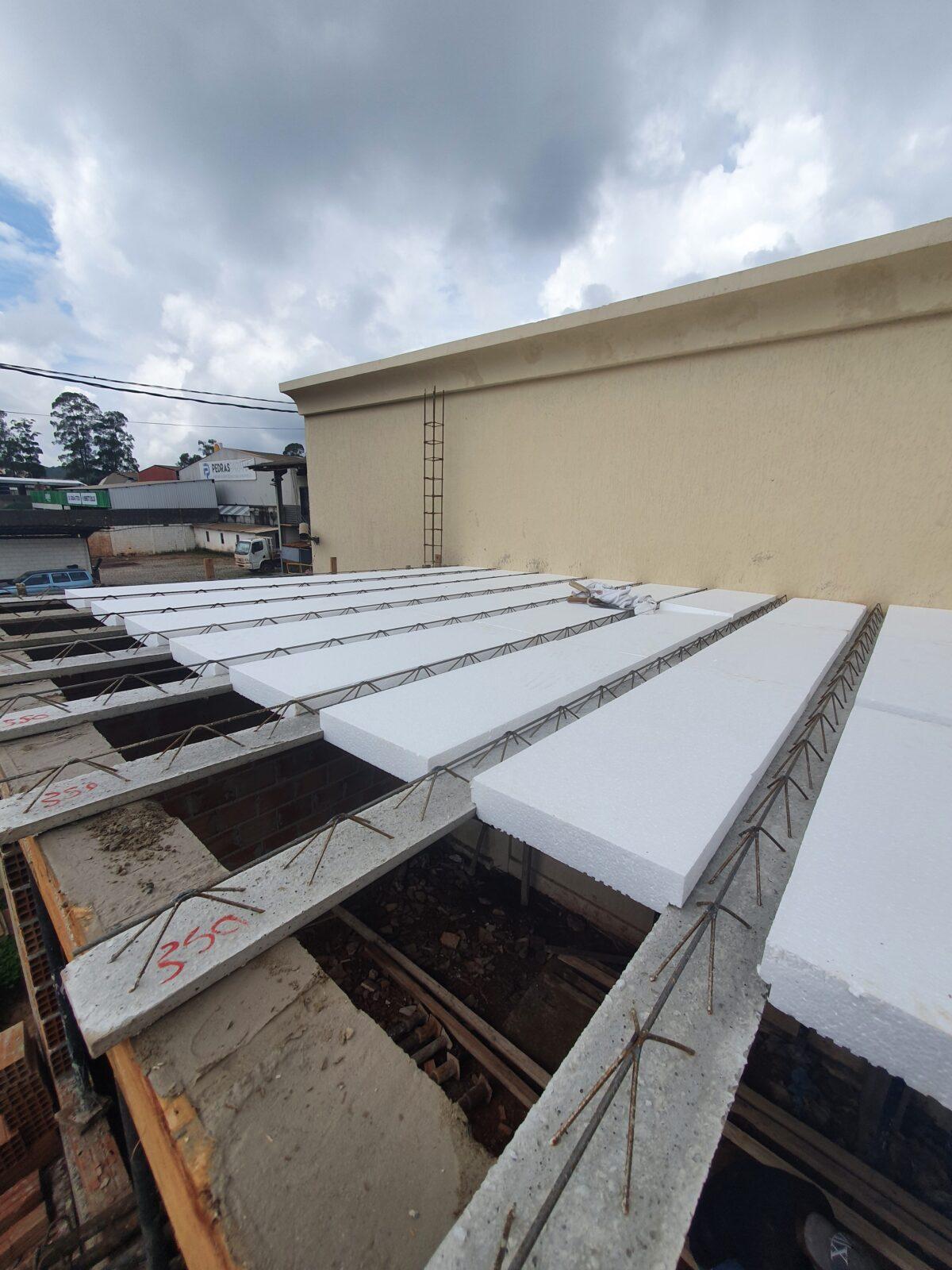 Após o nivelamento dos pisos com o reaterro iniciamos a montagem da laje treliçada com EPS e posterior concretagem.
