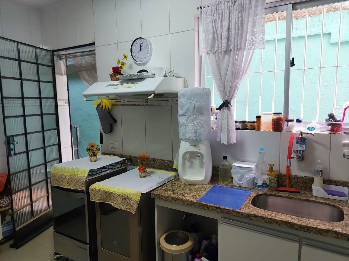 Para finalizar, na parte de baixo da pia instalamos uma chapa de aço inoxidável como prateleira e fizemos o fechamento desse vão com duas portas de correr em vidro.