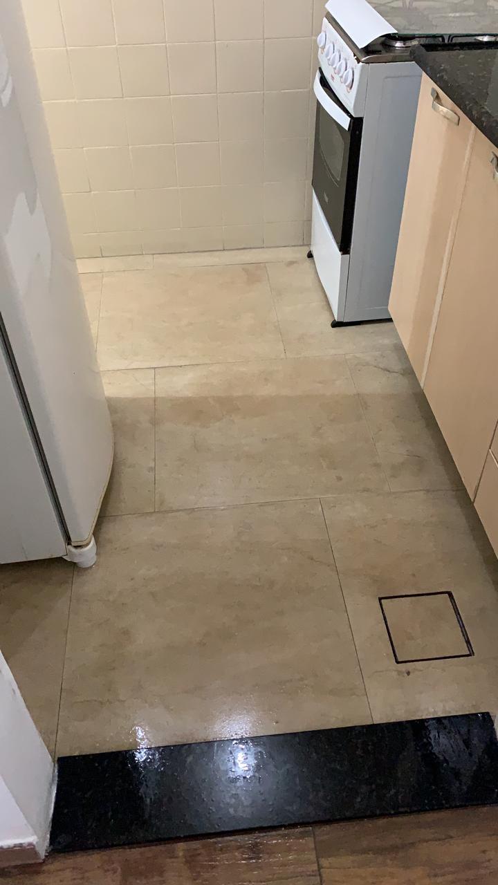 Por fim realizamos a aplicação de rejunte em todo o piso e rodapés.